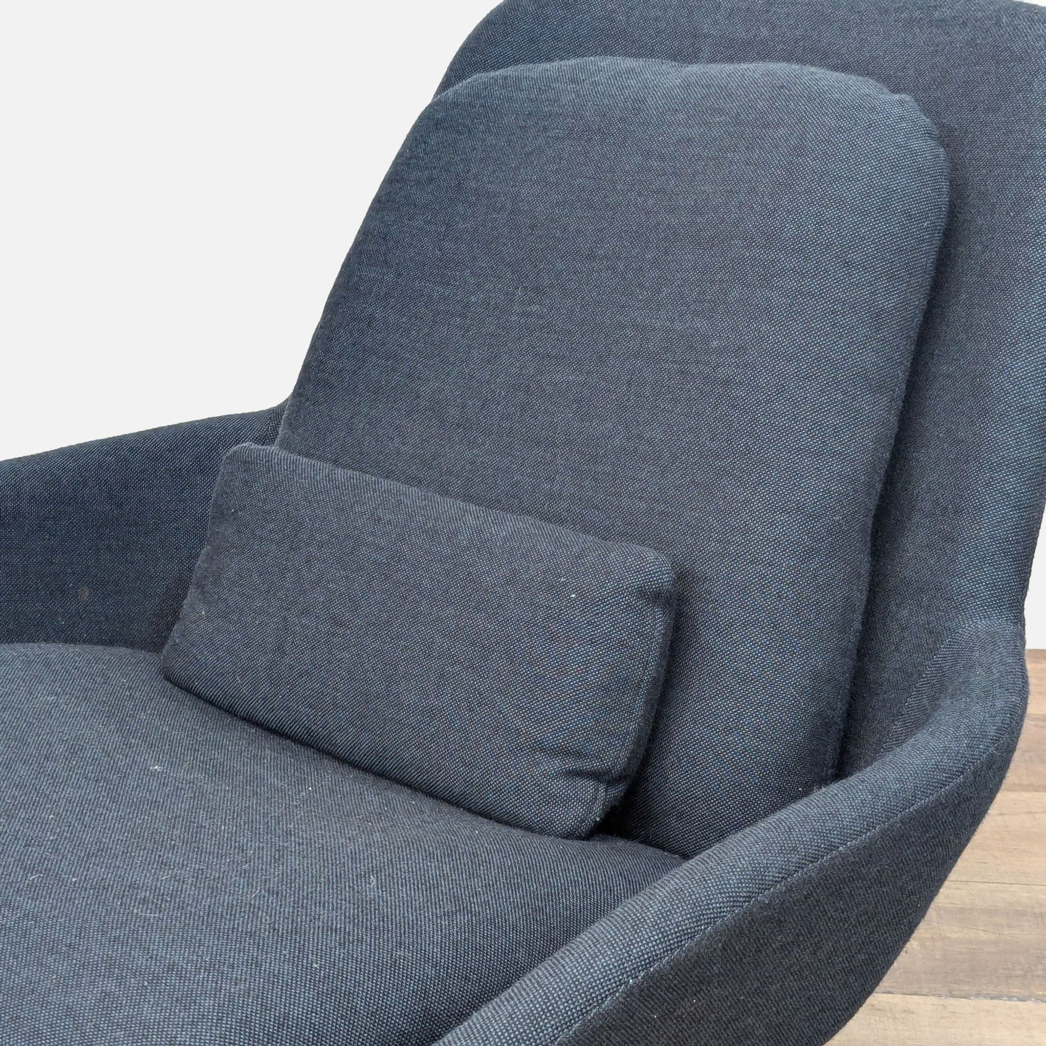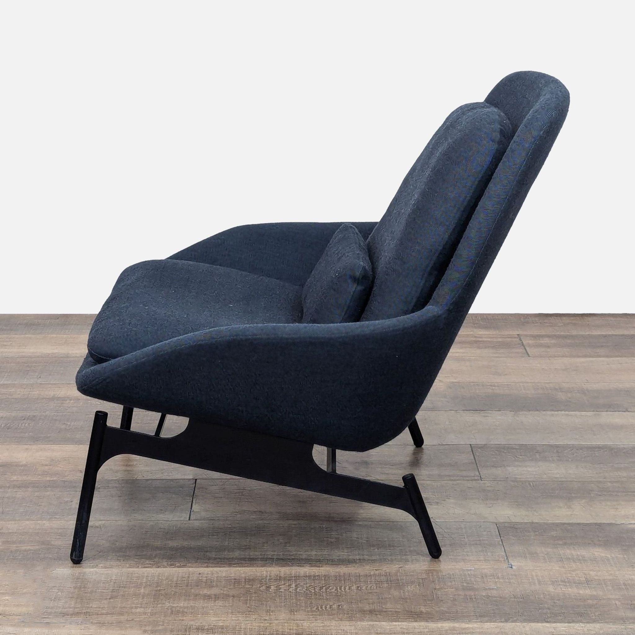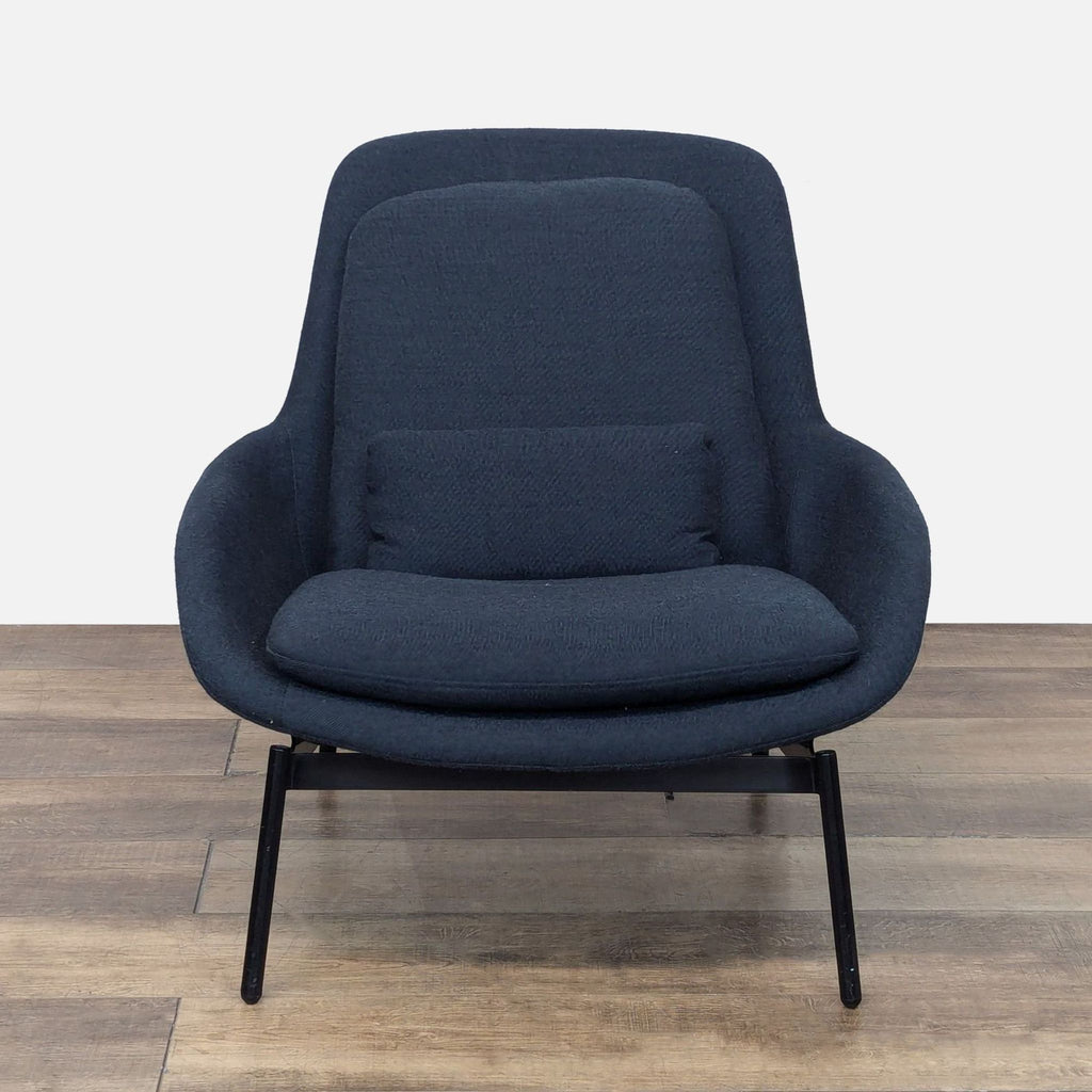 The Field Lounge Chair Steel features bent wood construction with light all-over padding, reversible seat and back cushions and matching lumbar pillow.