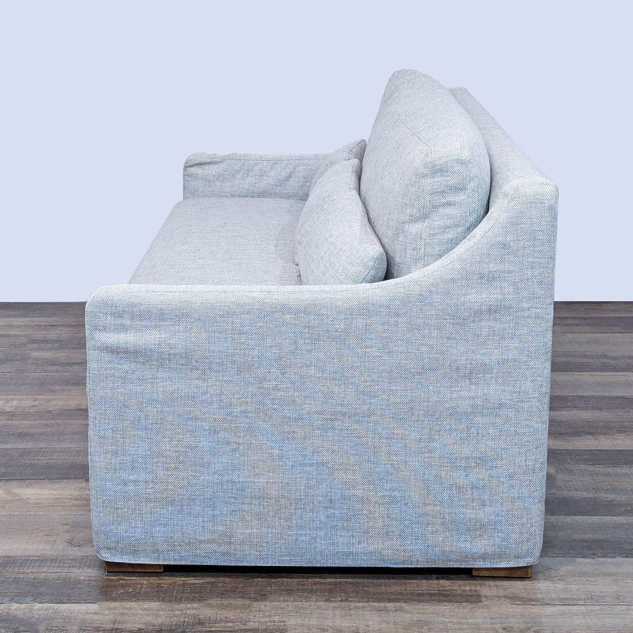 Ella sofa with slipcover in Haze Performance Pebble Knit fabric.