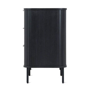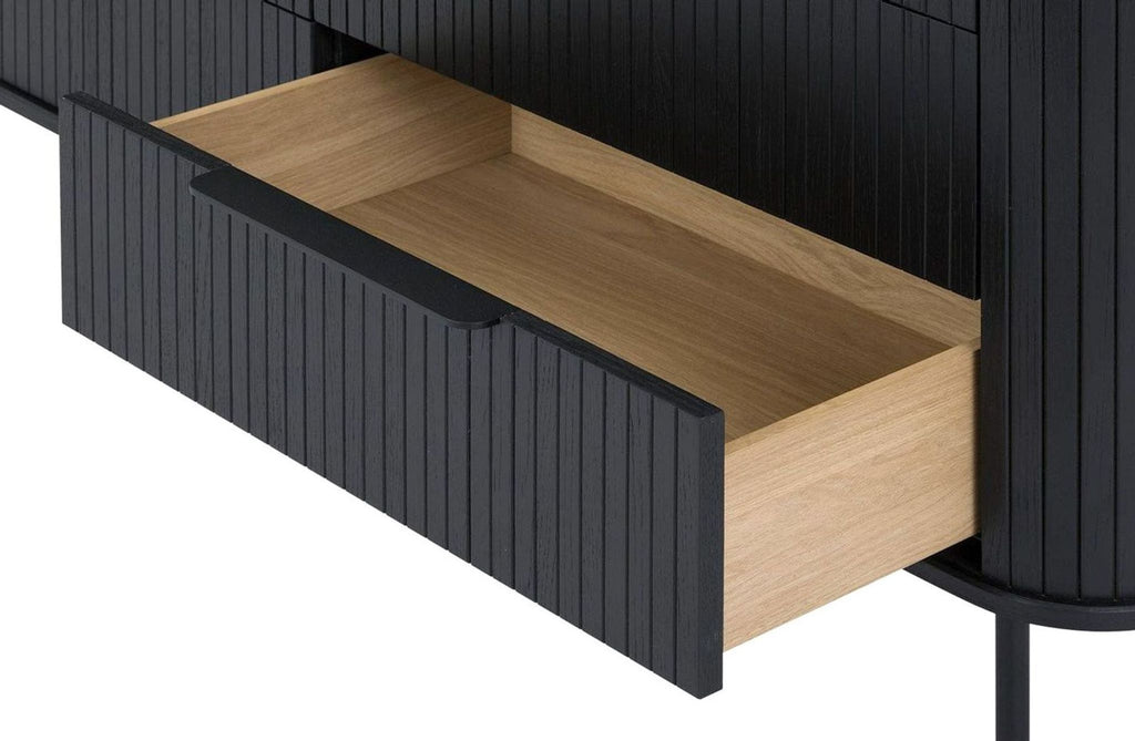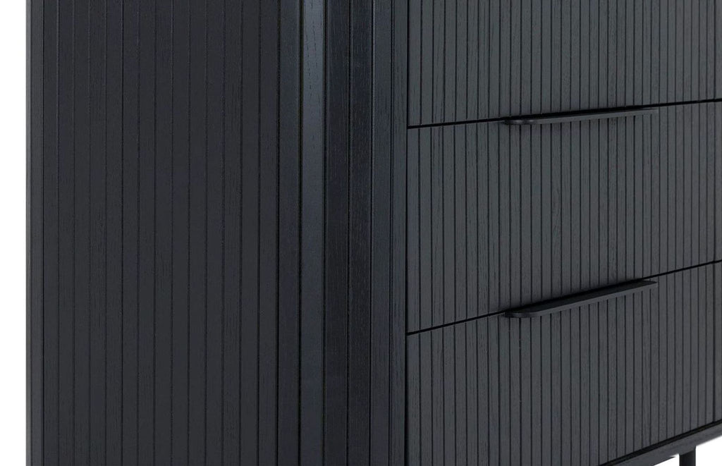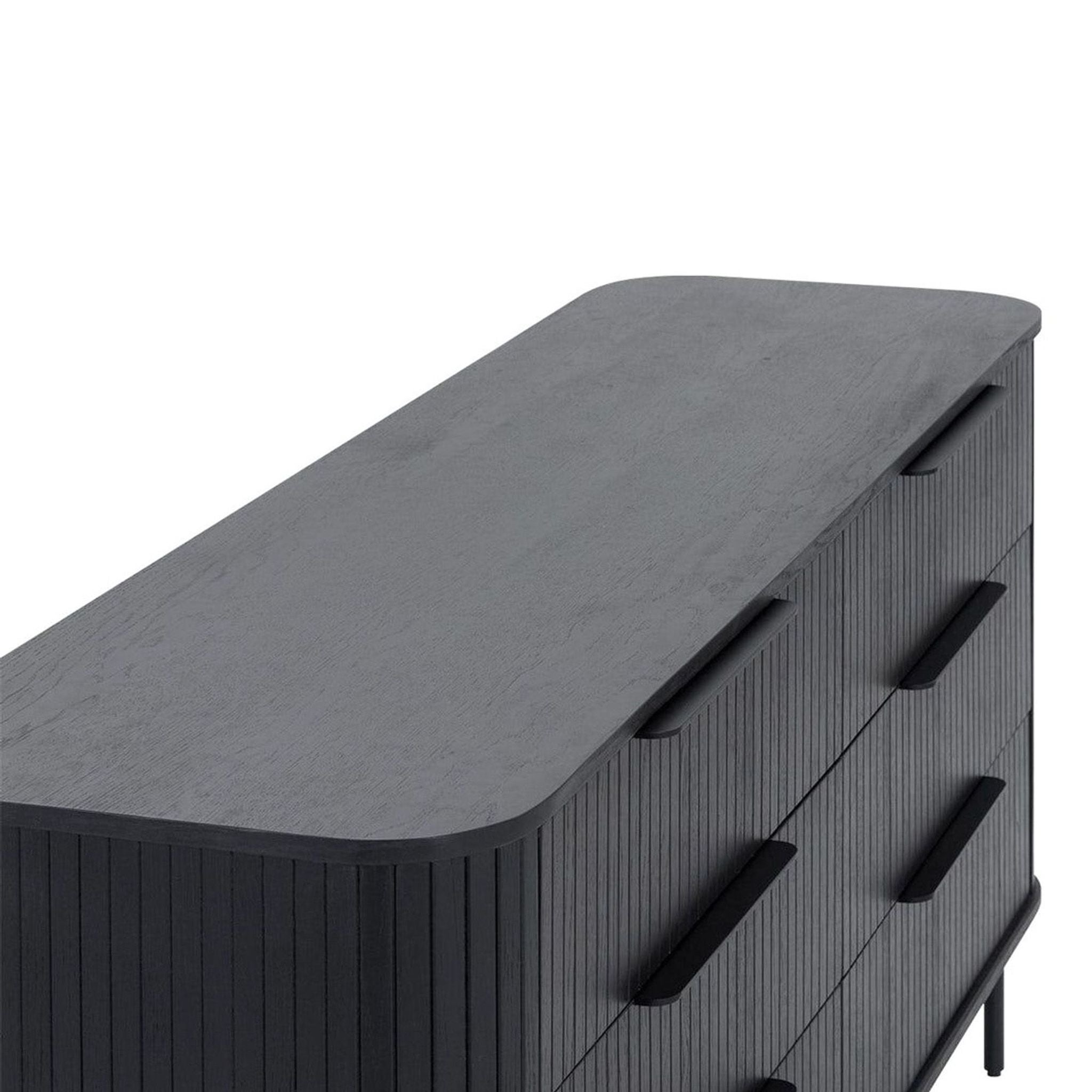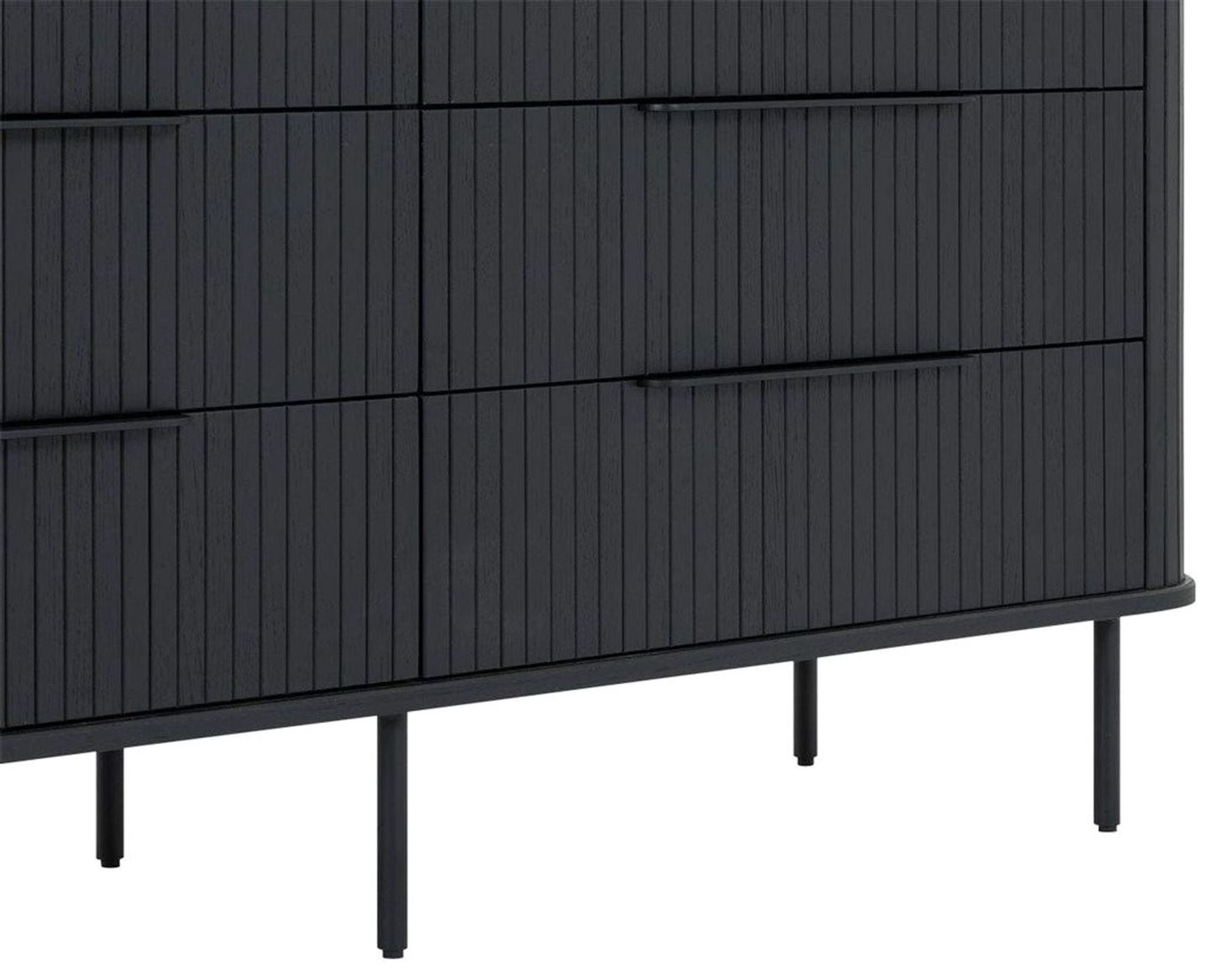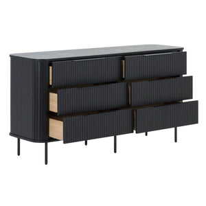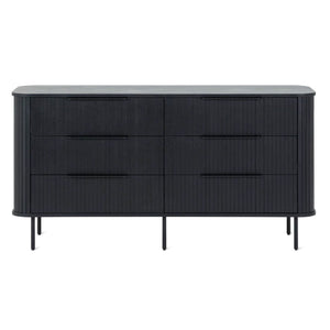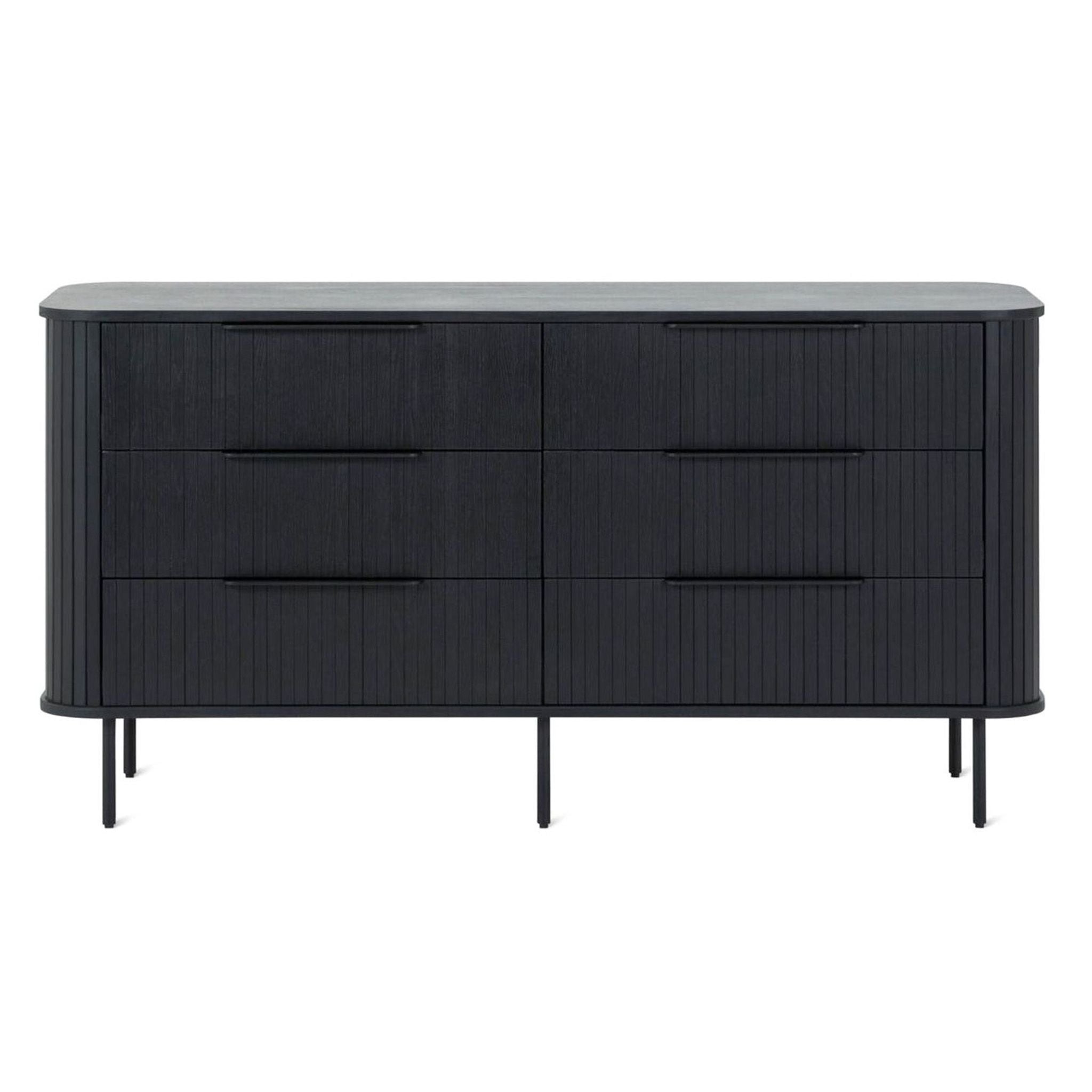 The Easy Edge double dresser features curved lines and timeless tambour panels, six spacious drawers and a black finish.
