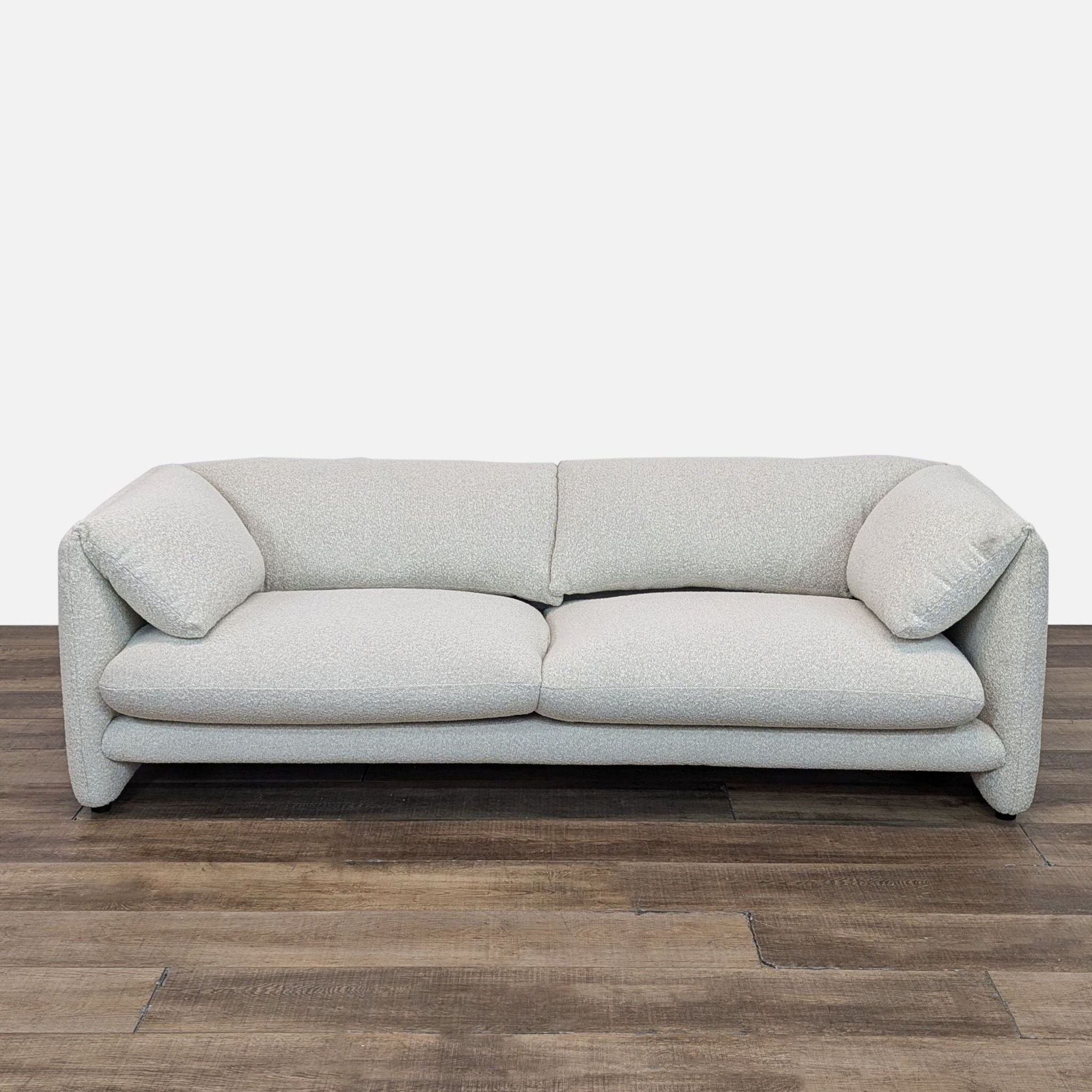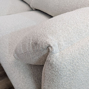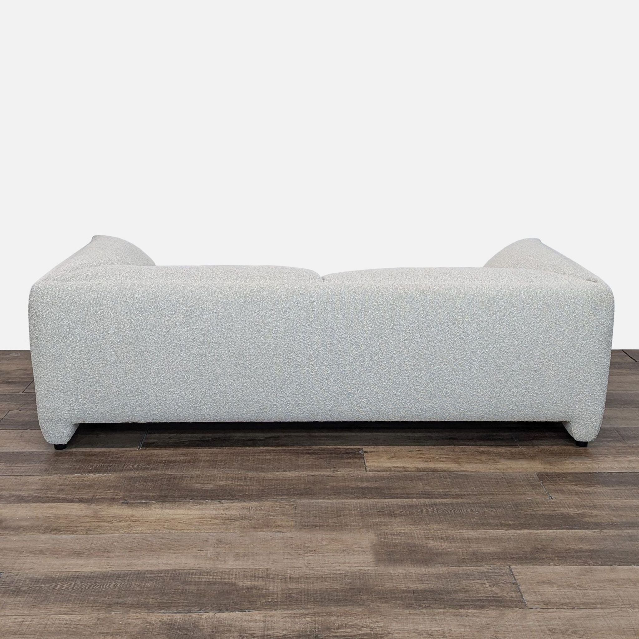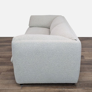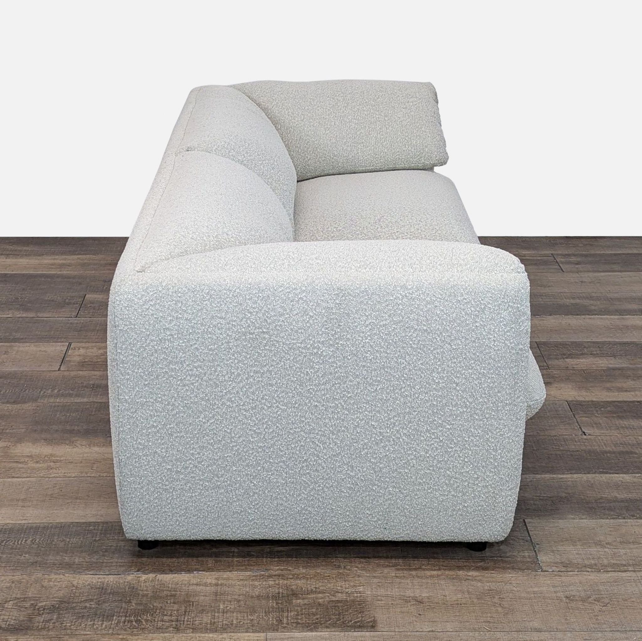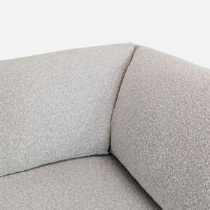 The Lucas sofa features minimalist style and is upholstered in stain resistant performance Bouclè fabric in White Quartz.
