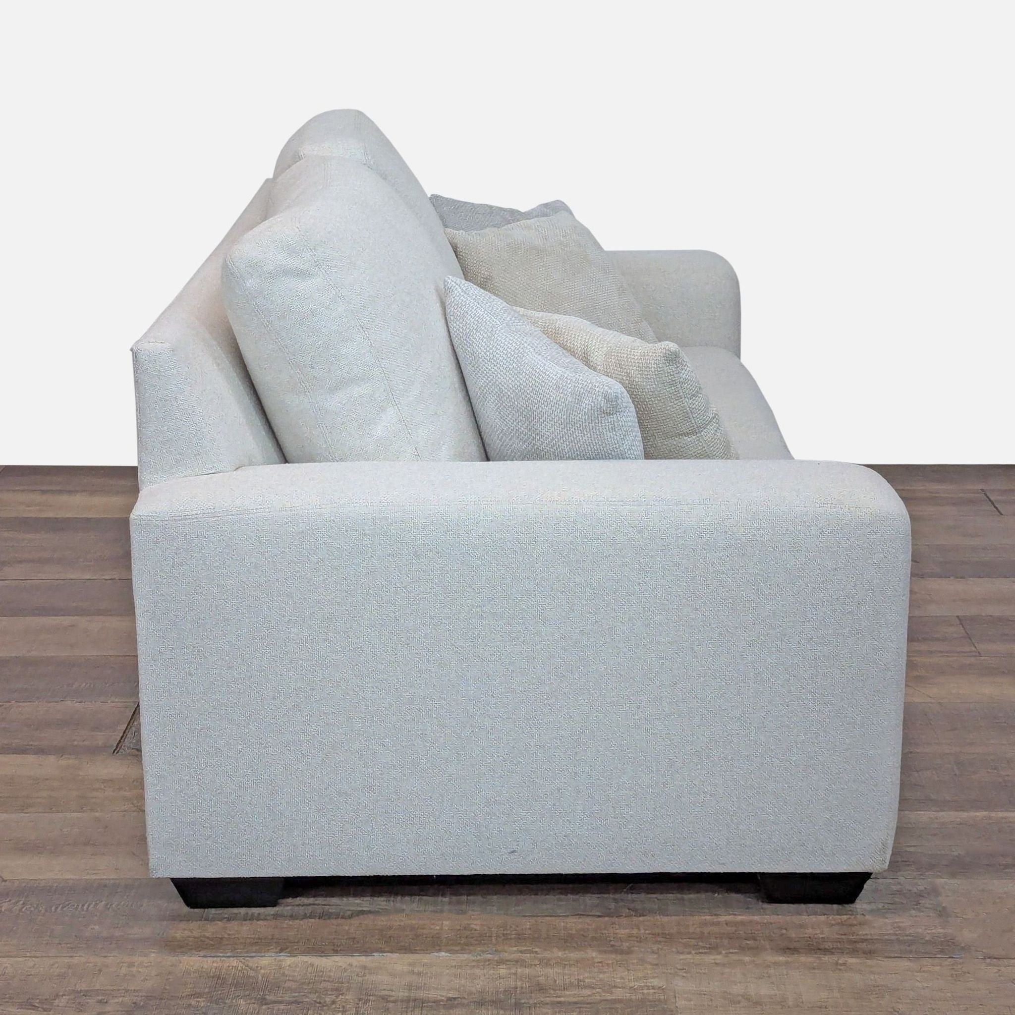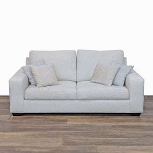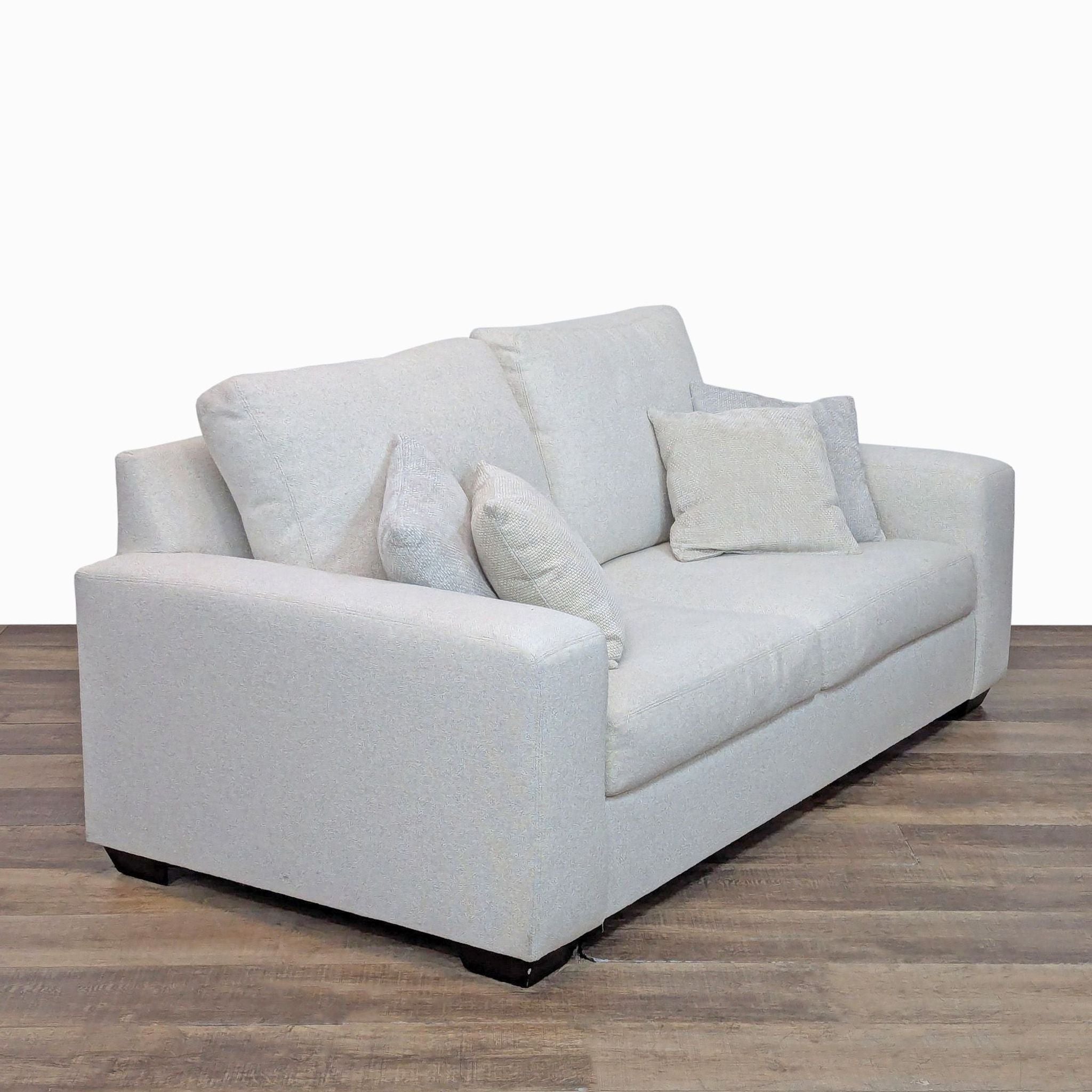 Features square arms with down-blend-wrapped seat and back cushions for a softer feel.