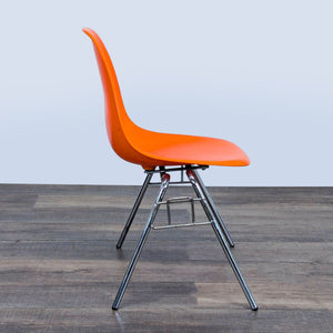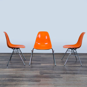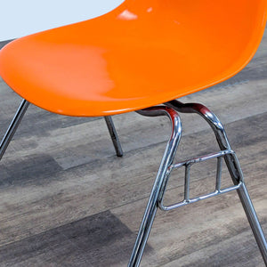 Each chair has a durable plastic seat and shiny chrome legs for a modern look.