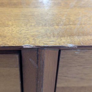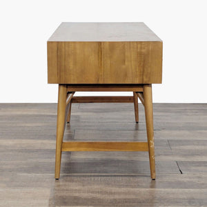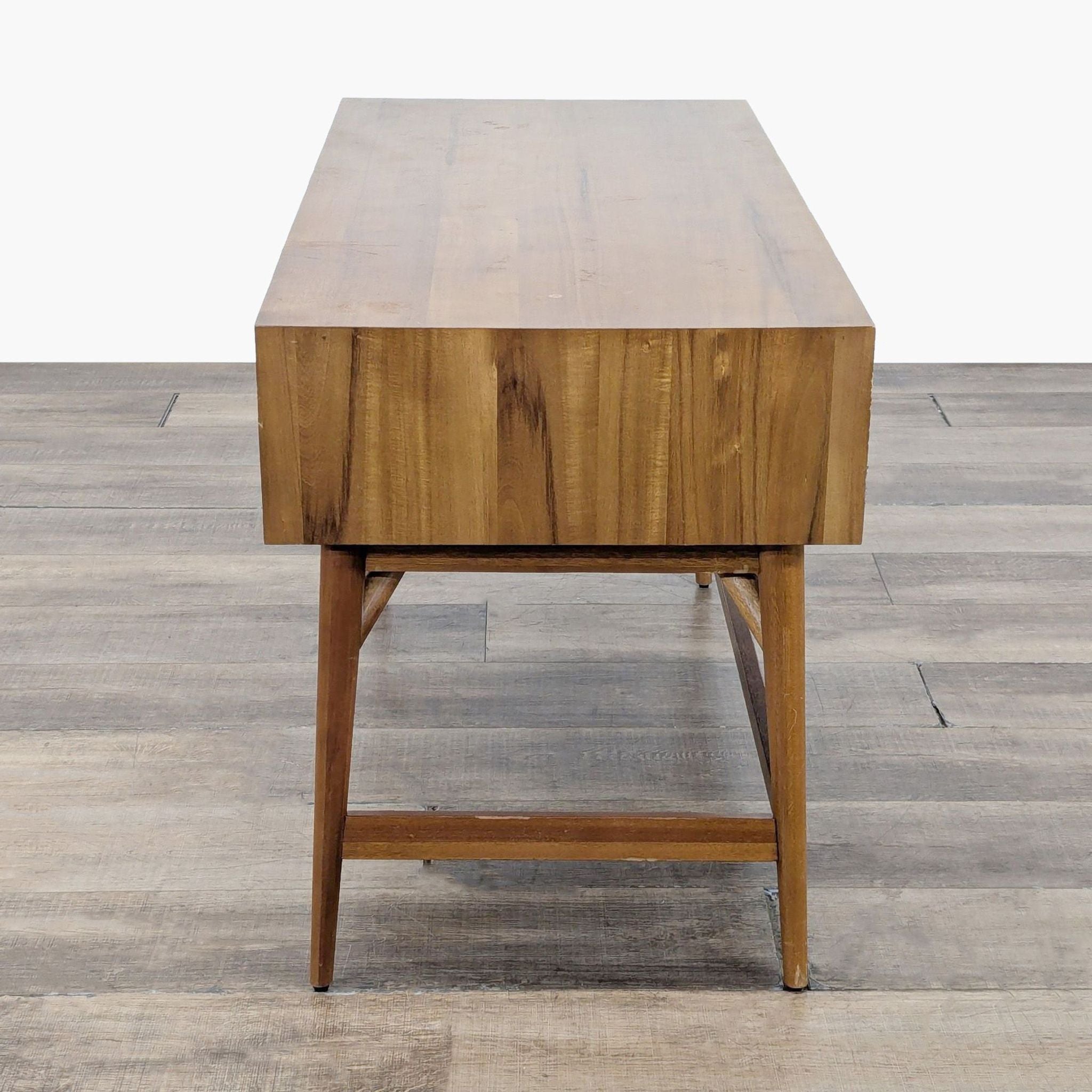 Kiln-dried solid eucalyptus wood and engineered wood with an acacia wood veneer in an Acorn finish.