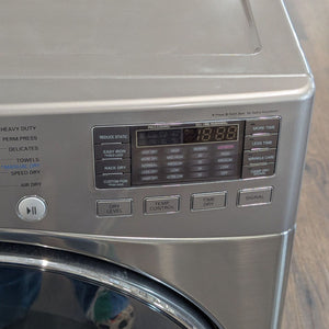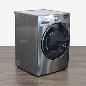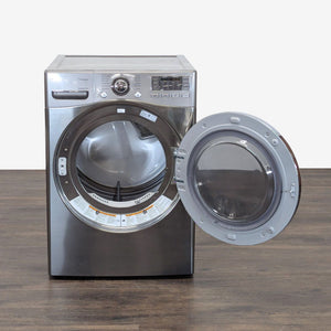 This LG front load dryer features a modern stainless steel finish, a large glass door for easy loading, and easy-to-use digital controls. Perfect for saving space and time, this unit is ideal for any home. Reliable LG quality ensures excellent washing and drying performance.