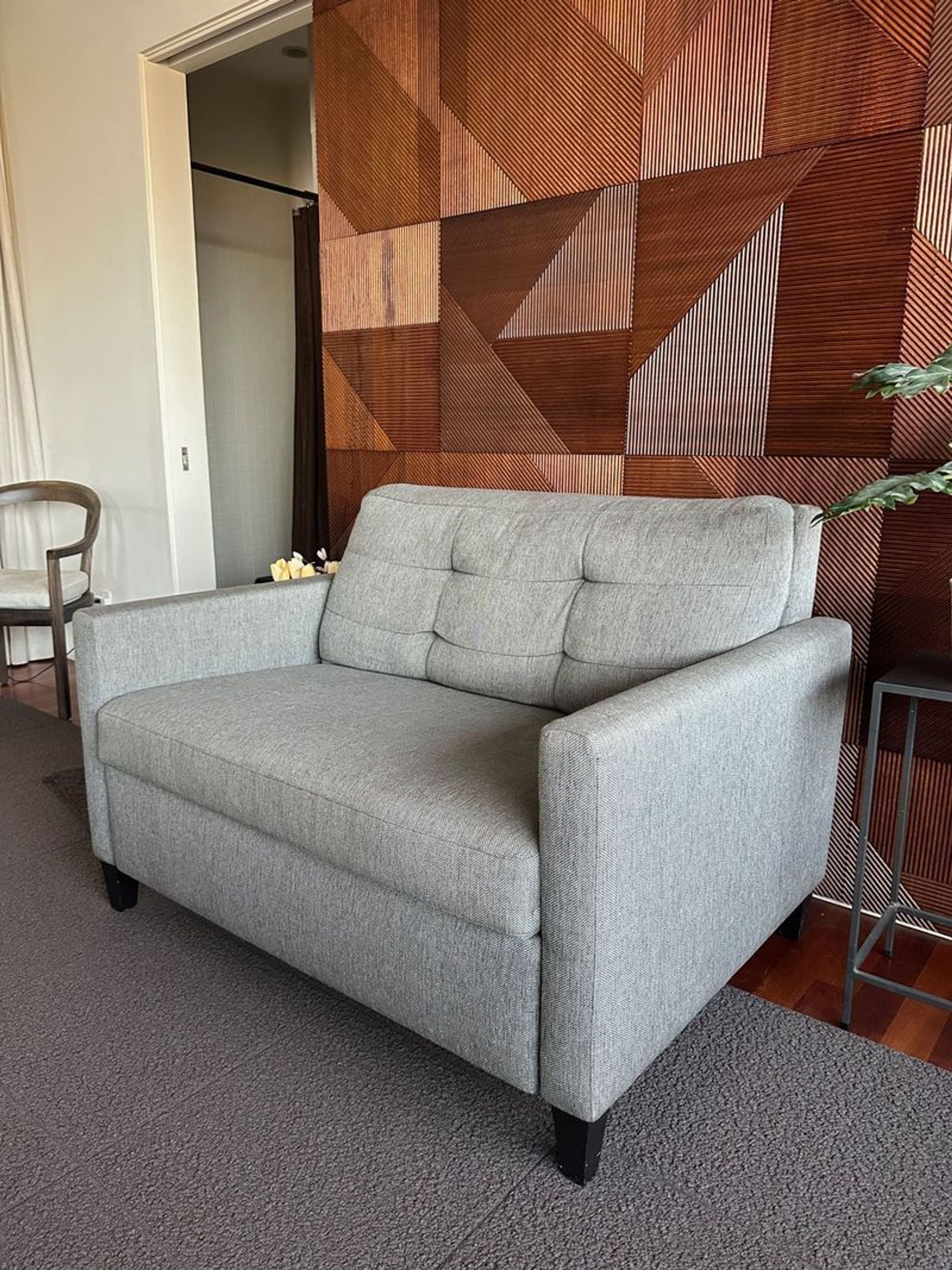 Sloan couch with left chaise. 100” width, standard chaise length. Heather fabric, double down blend cushions. Great condition.