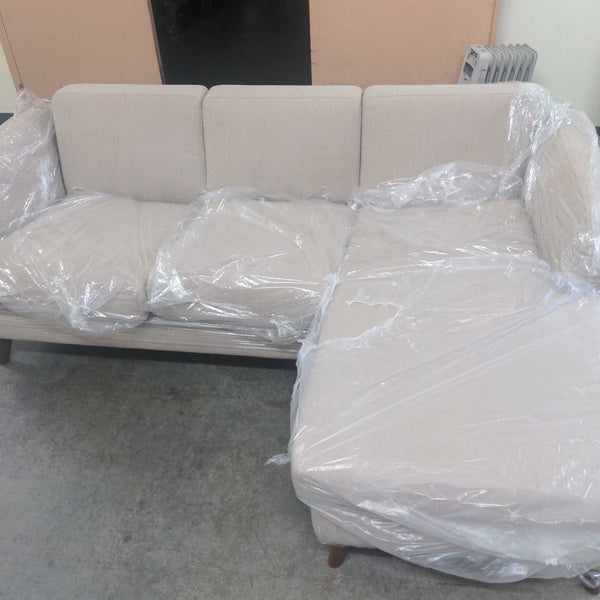 Light Beige Corduroy Sectional Sleeper Sofa with Storage Chaise and Pillows