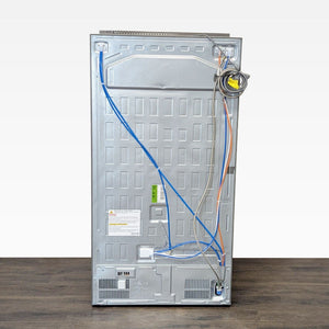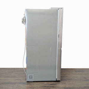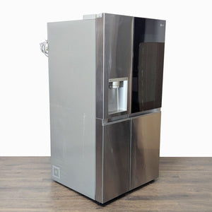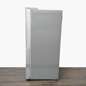This LG refrigerator offers a modern stainless steel finish and a sleek side-by-side design. It features a built-in water and ice dispenser for convenience and has spacious storage with multiple shelves, drawers, and door bins to keep your food organized. The interior is bright and easy to clean, making it a great choice for any kitchen.