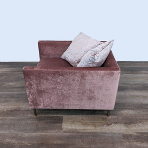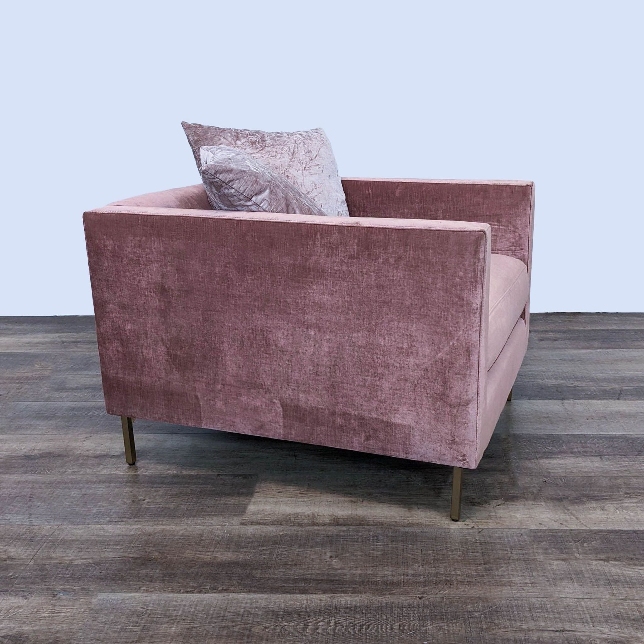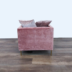 McCreary Modern Emma Chair with Brussels Rosewood Upholstery, wood legs and matching throw pillows.