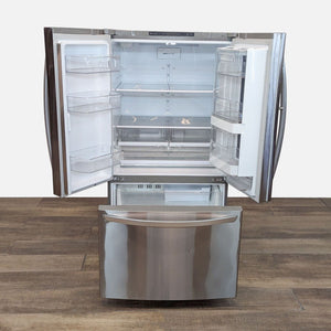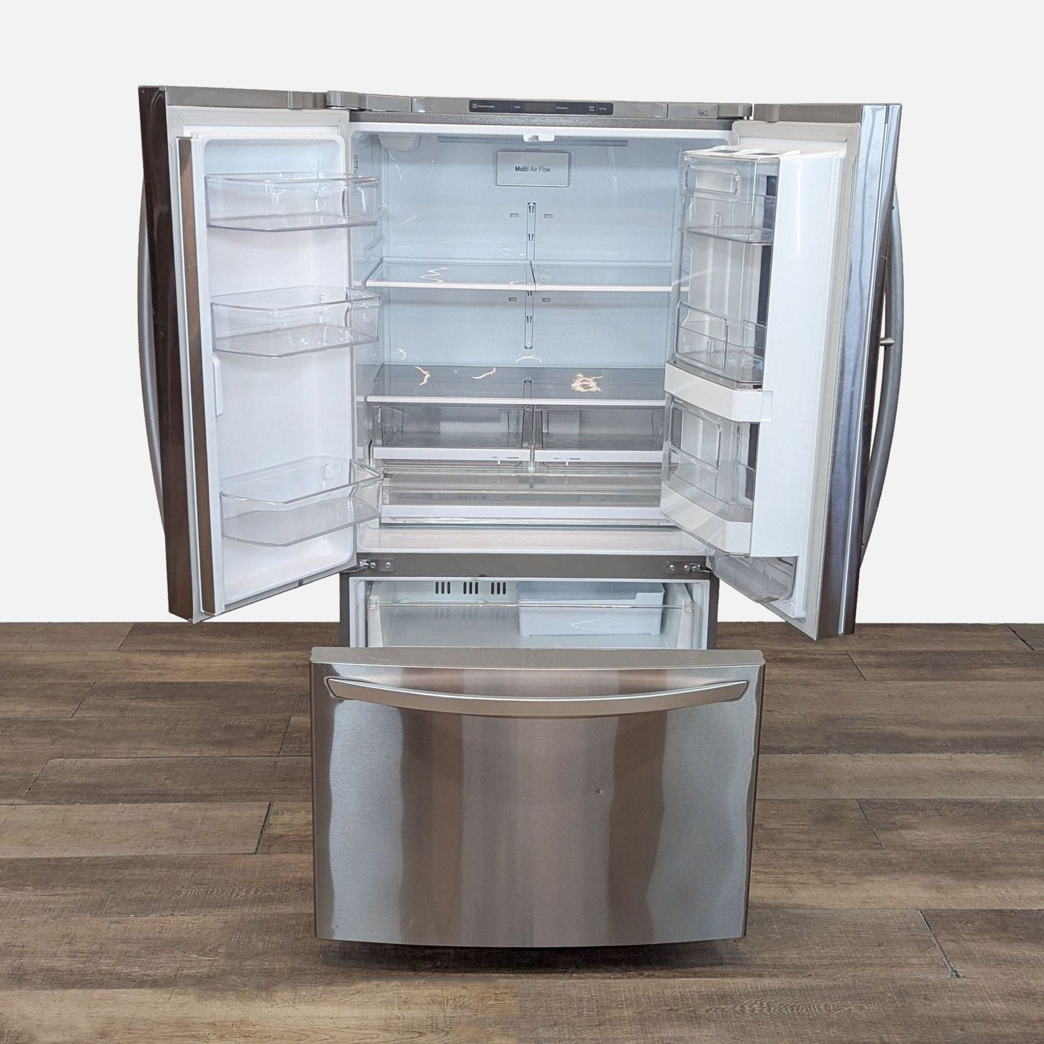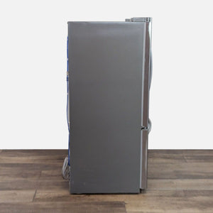 Experience the convenience of this LG stainless steel refrigerator. It features French doors and a spacious bottom freezer. The adjustable shelves and clear door bins offer flexible storage, making organization easy. Ideal for modern kitchens, it combines style and functionality to keep your food fresh and accessible.