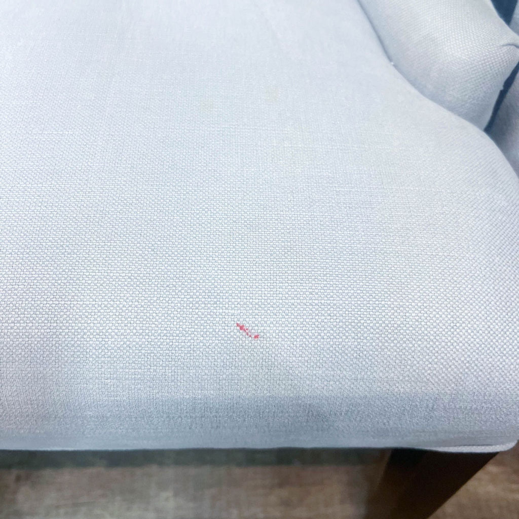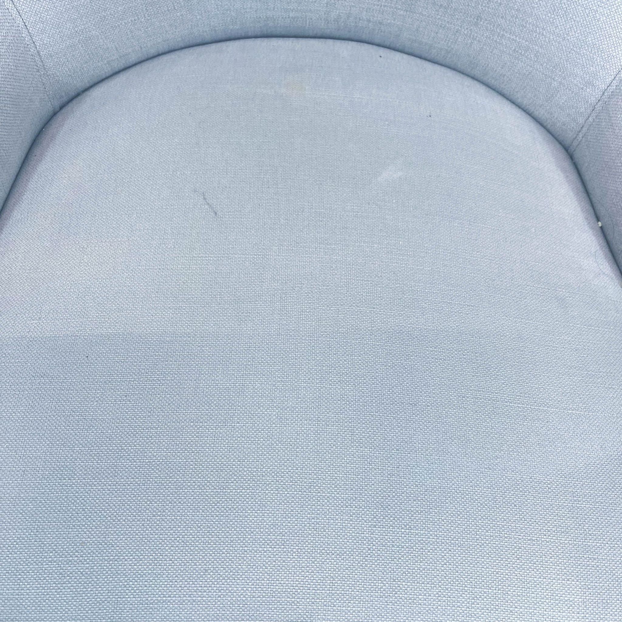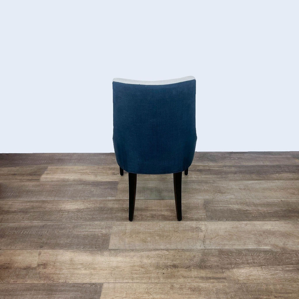 This contemporary dining chair features a clean-lined high back, armless design, finished with tapered solid wood legs. The cushioned seat and back is custom upholstered in two toned Duralee fabric.