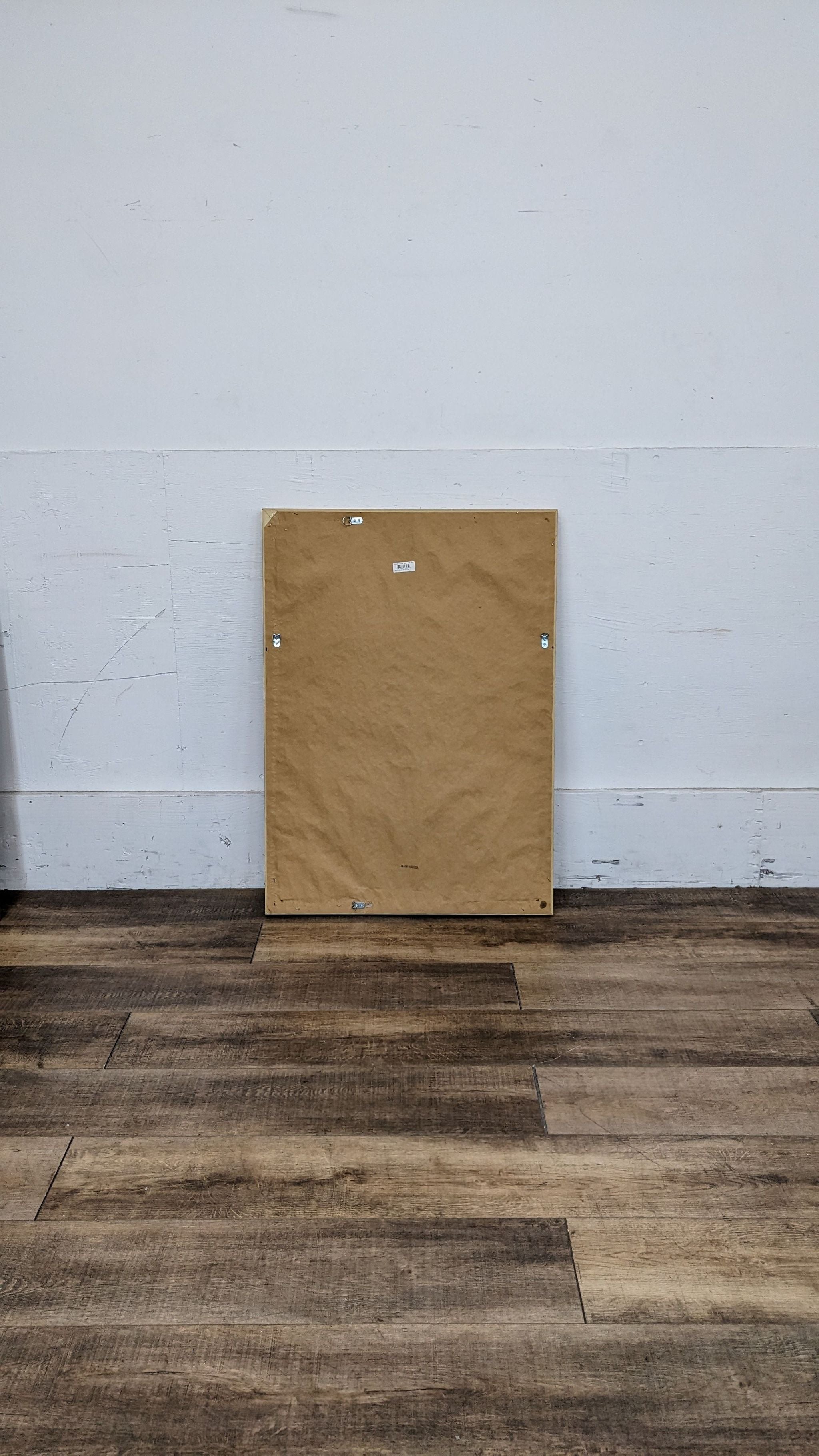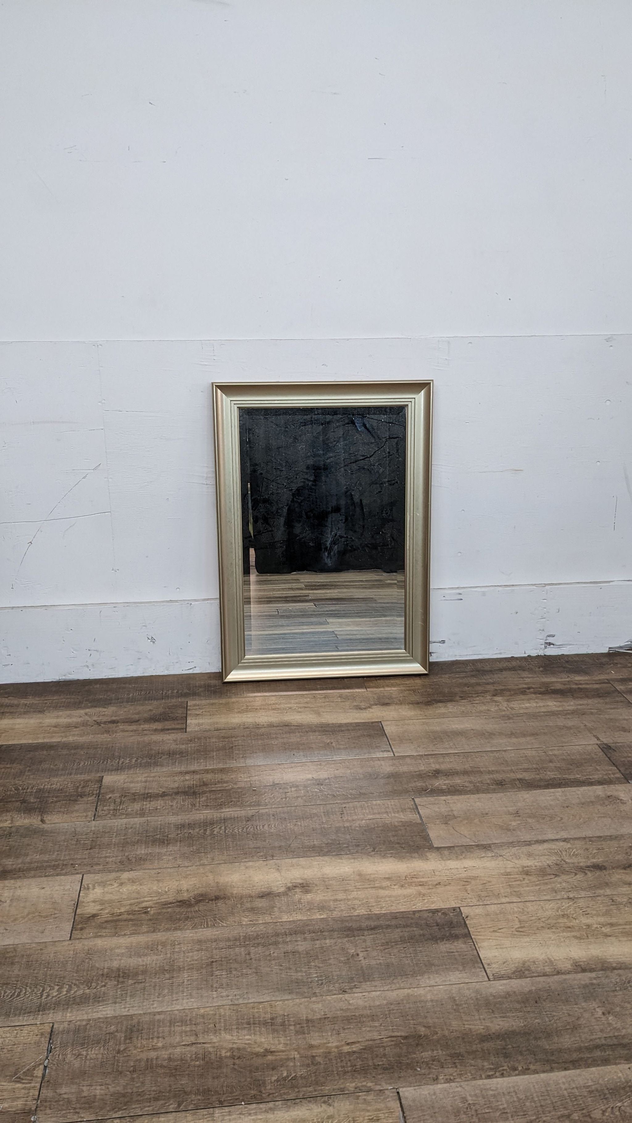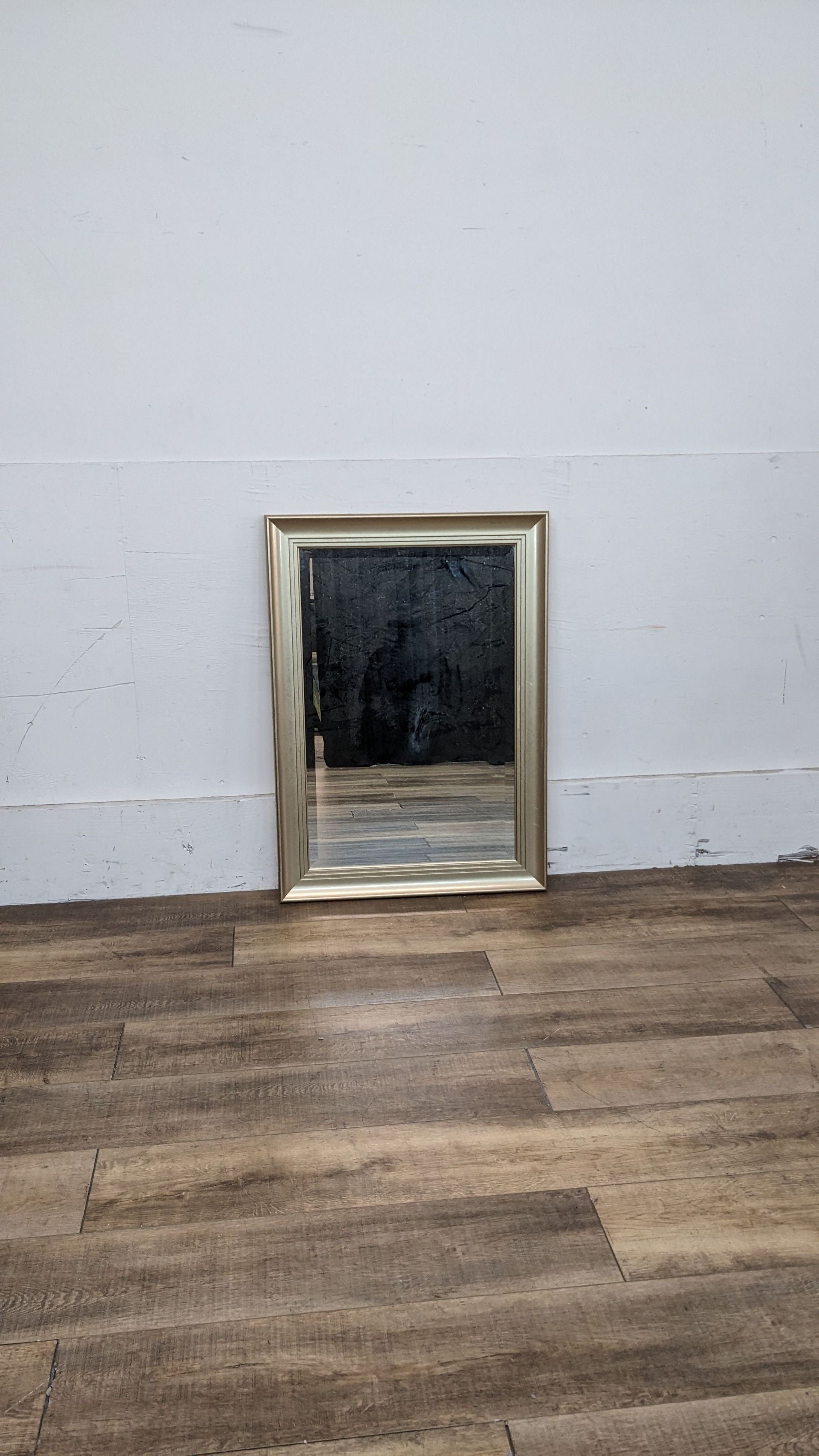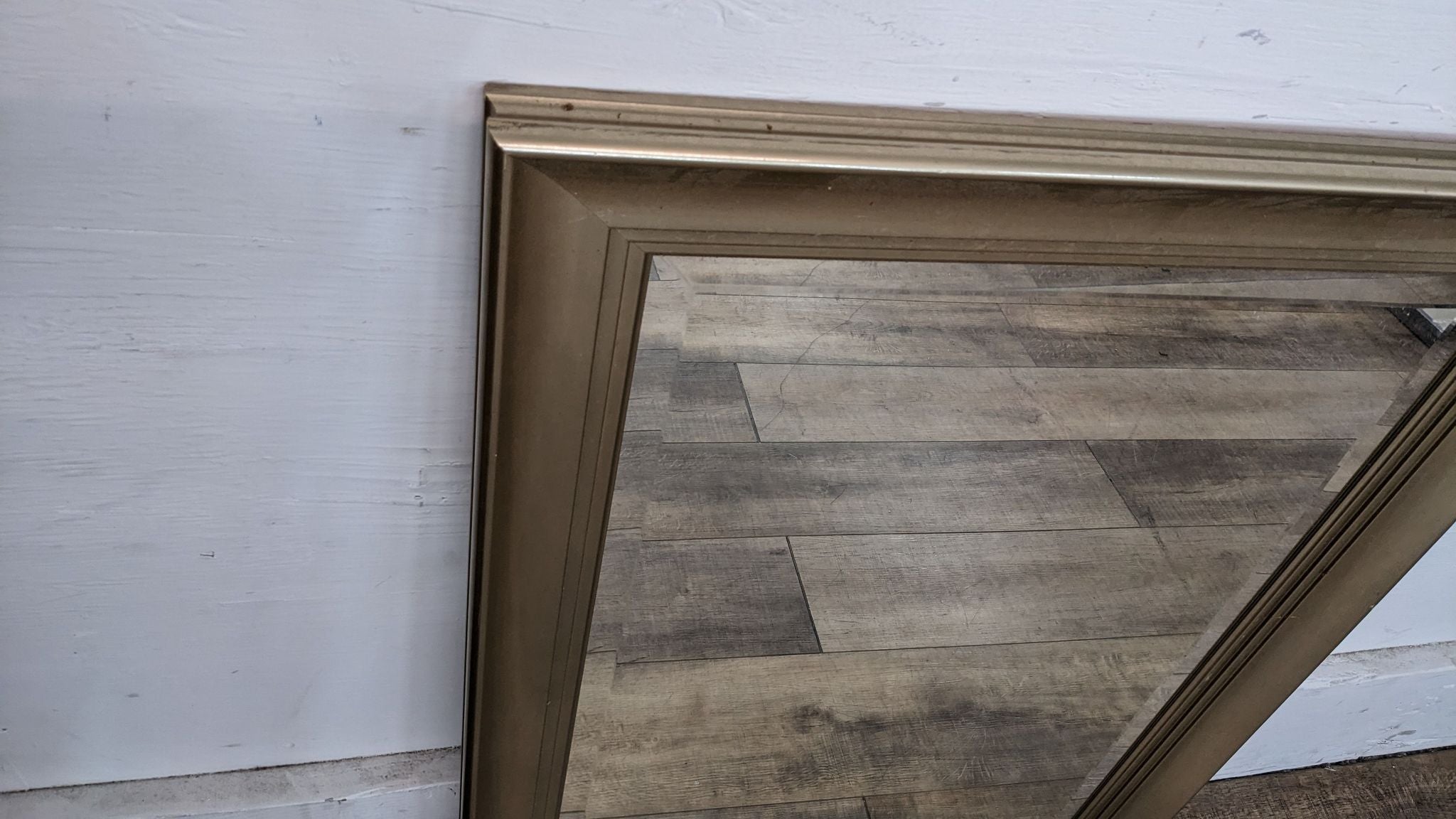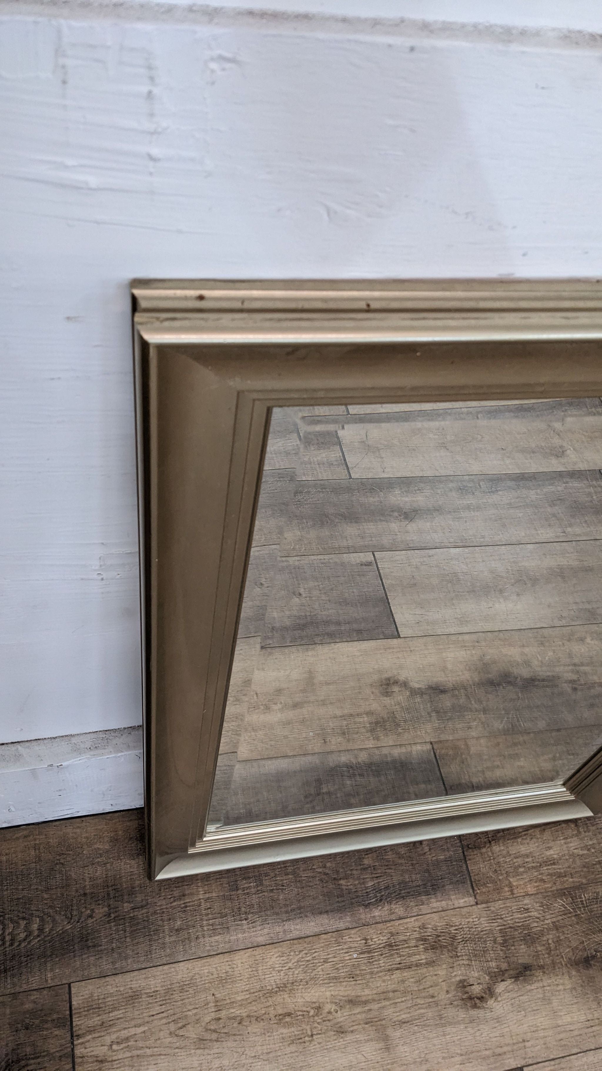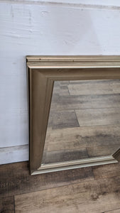 Beveled wall mirror with gold frame.