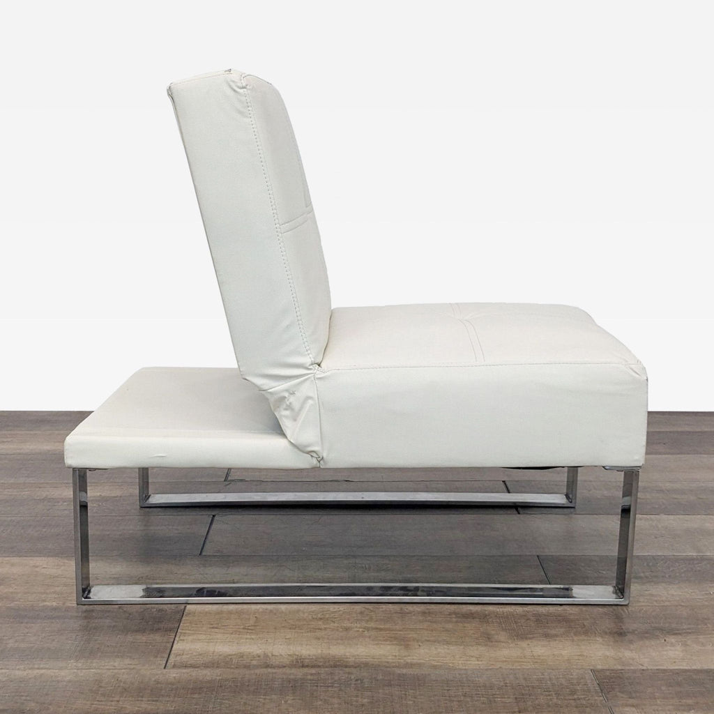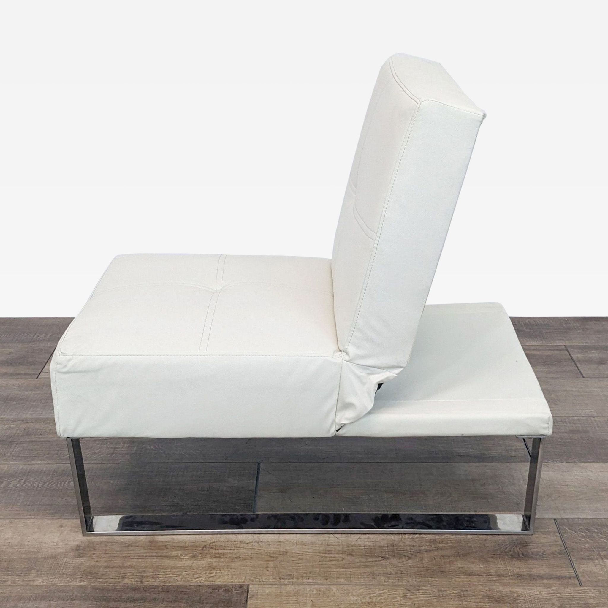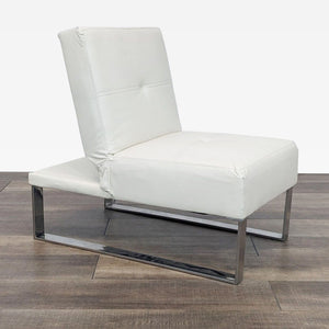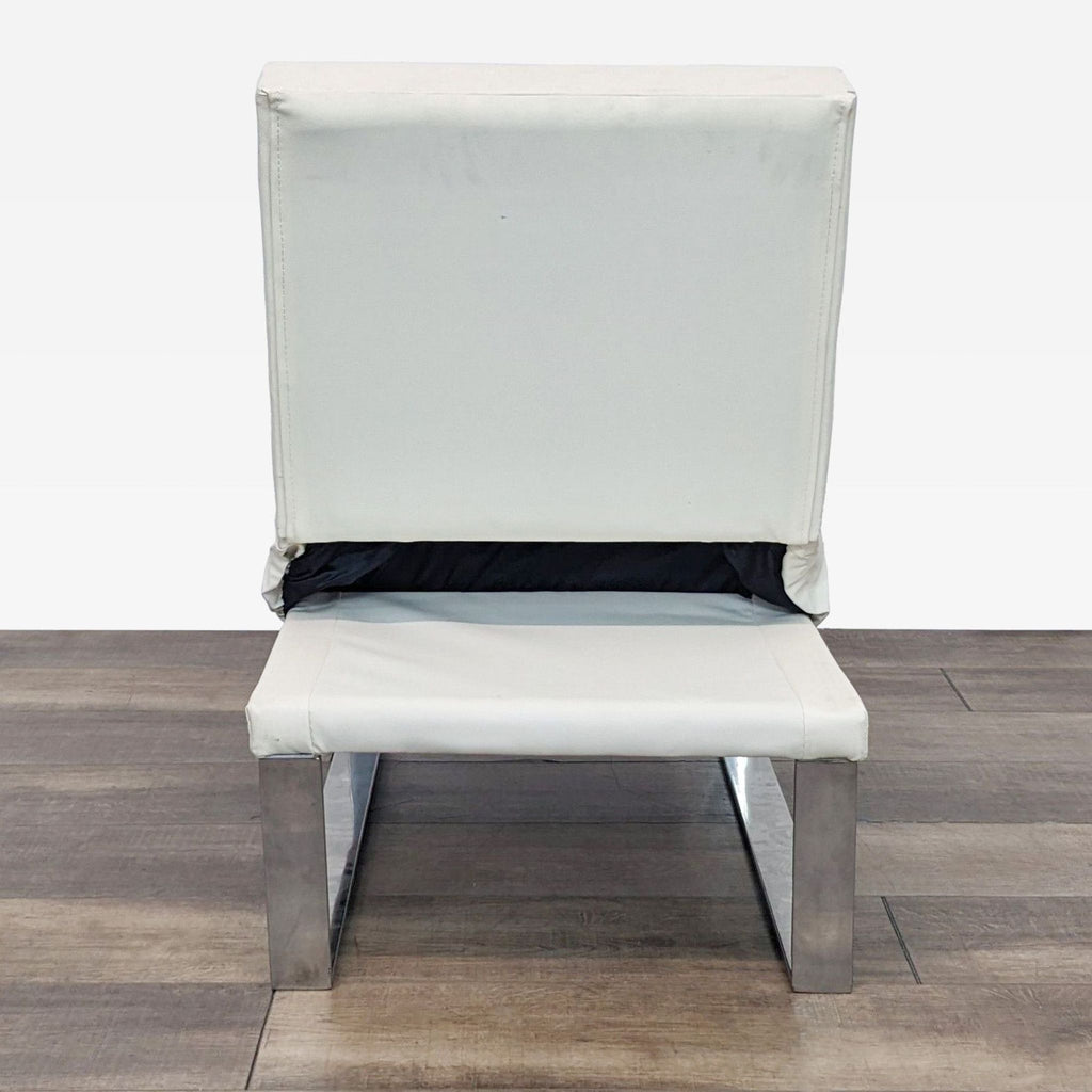Off White Leather Look Folding Chair On Modern Chrome Base