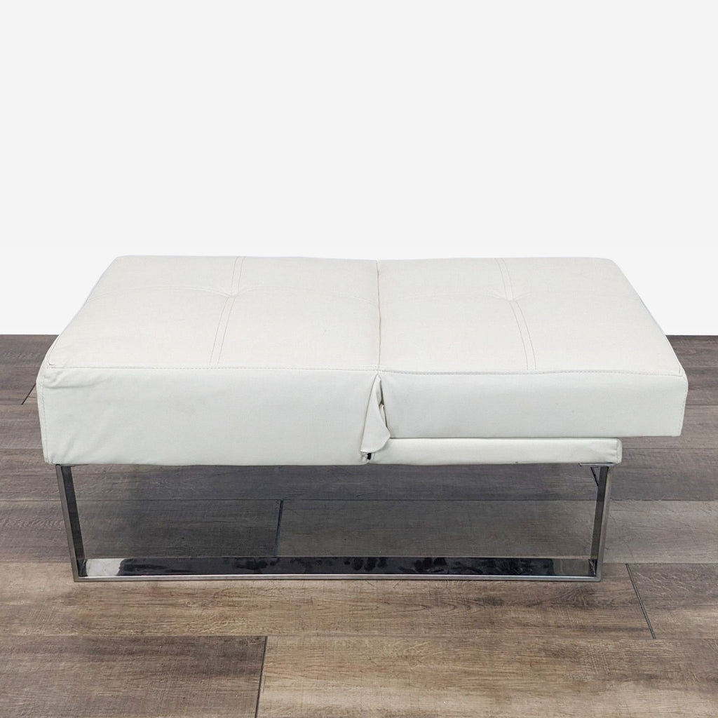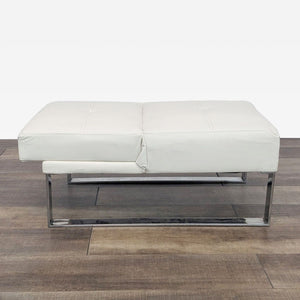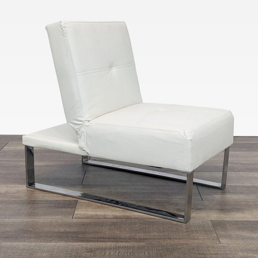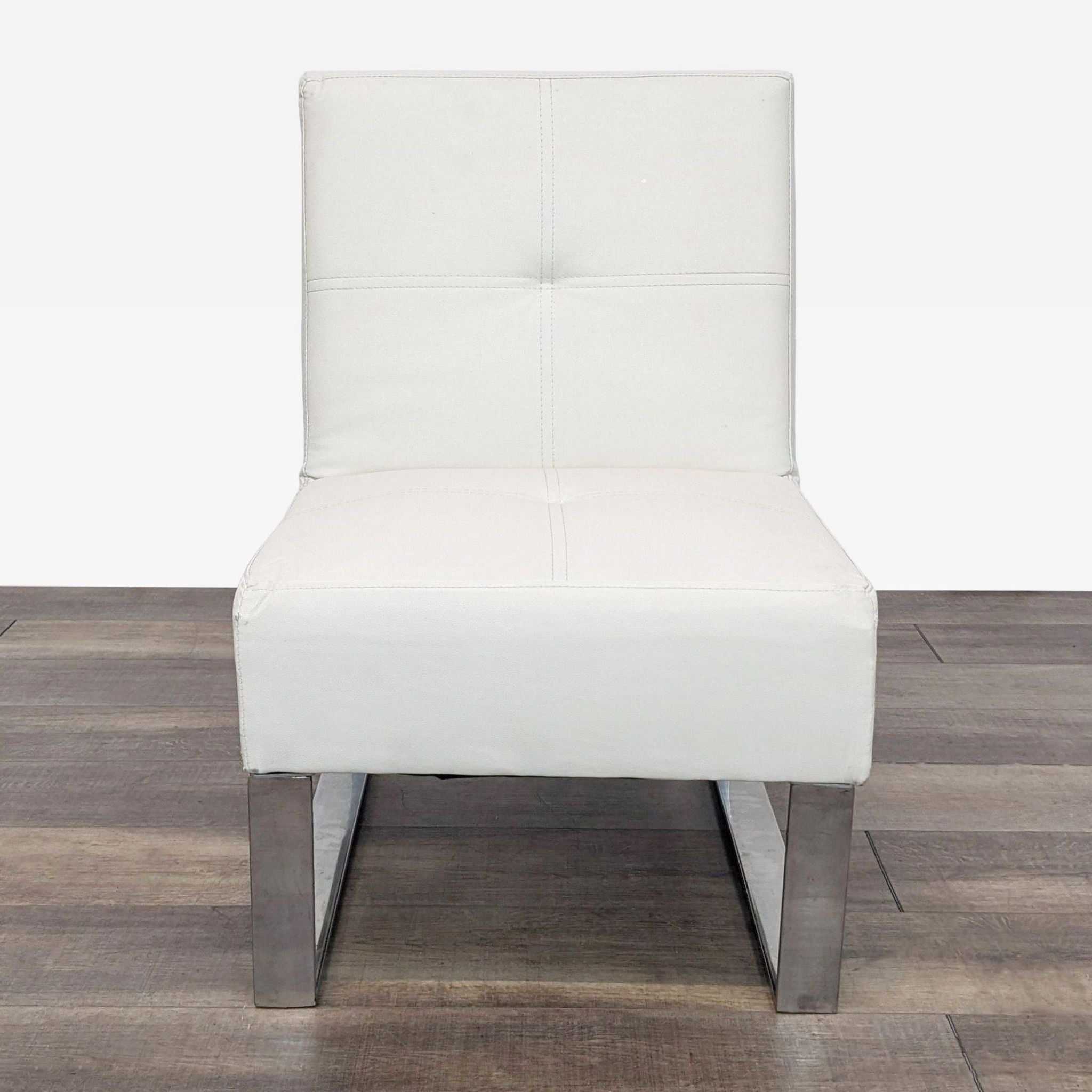 Off White Leather Look Folding Chair On Modern Chrome Base